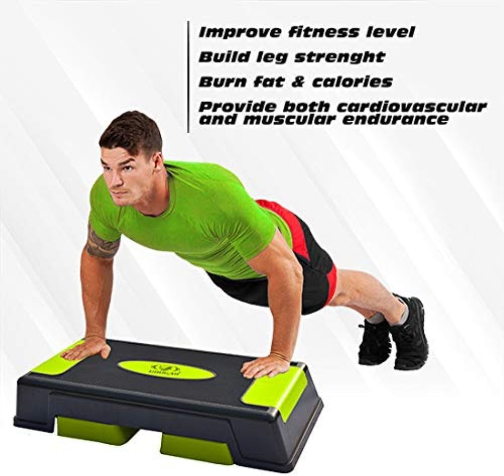 ارفع كثافة التمرين عن طريق ضبط ارتفاع المنصة من 10 إلى 15 إلى 25 سم باستخدام الرافعات، مما يناسب تفضيلاتك الفردية ويساعد المستخدمين على زيادة معدل حرق السعرات الحرارية.